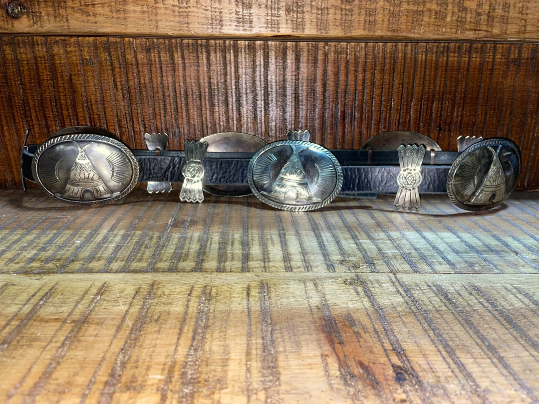 Feather concho: 3/4 inches wide and 2 1/2 tall