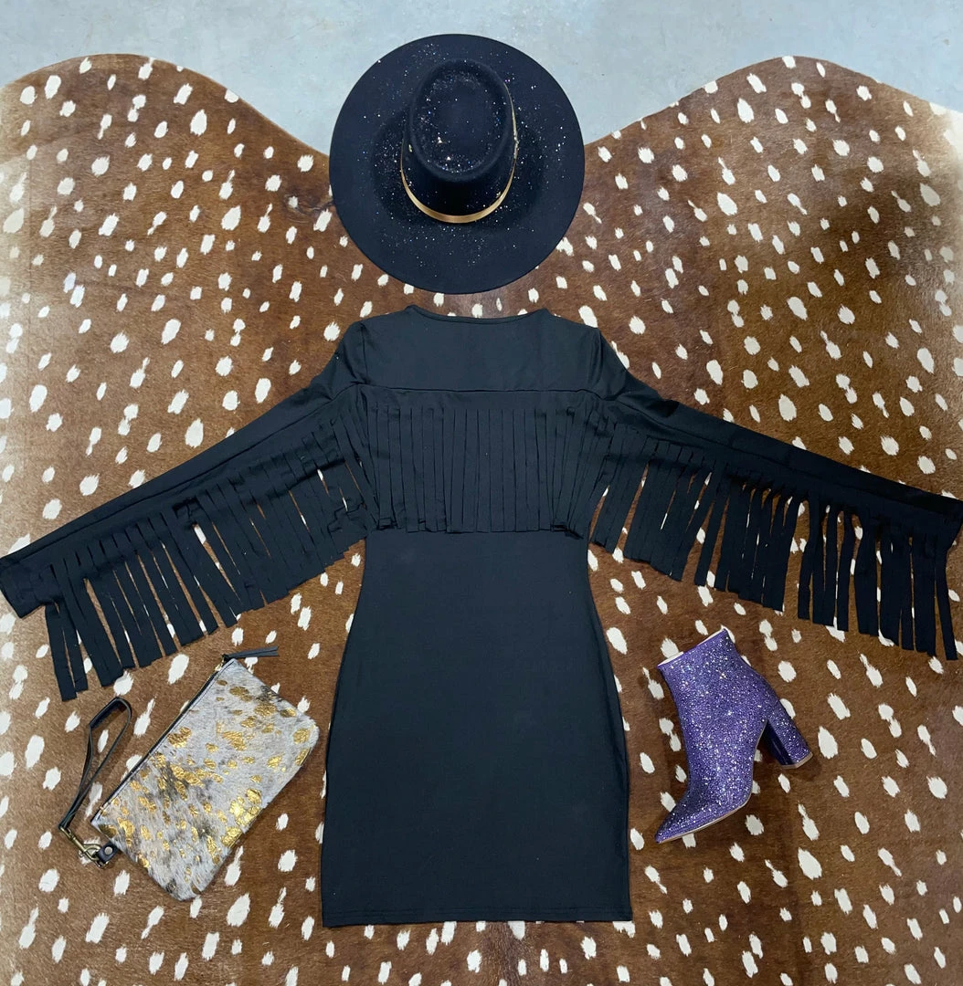 This super duper cute STRETCHY fringy dress is absolutely perfect for any party!