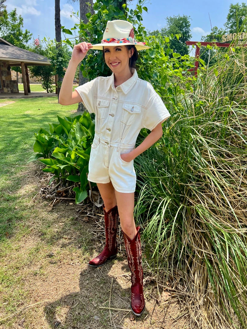 Painting houses? More like dressing up to go out! Summer cook outs? Yes. Walmart? Yes. Bar? Yes. Casual date? Yes. Dressed up or down this romper is perfect for so many occasions.