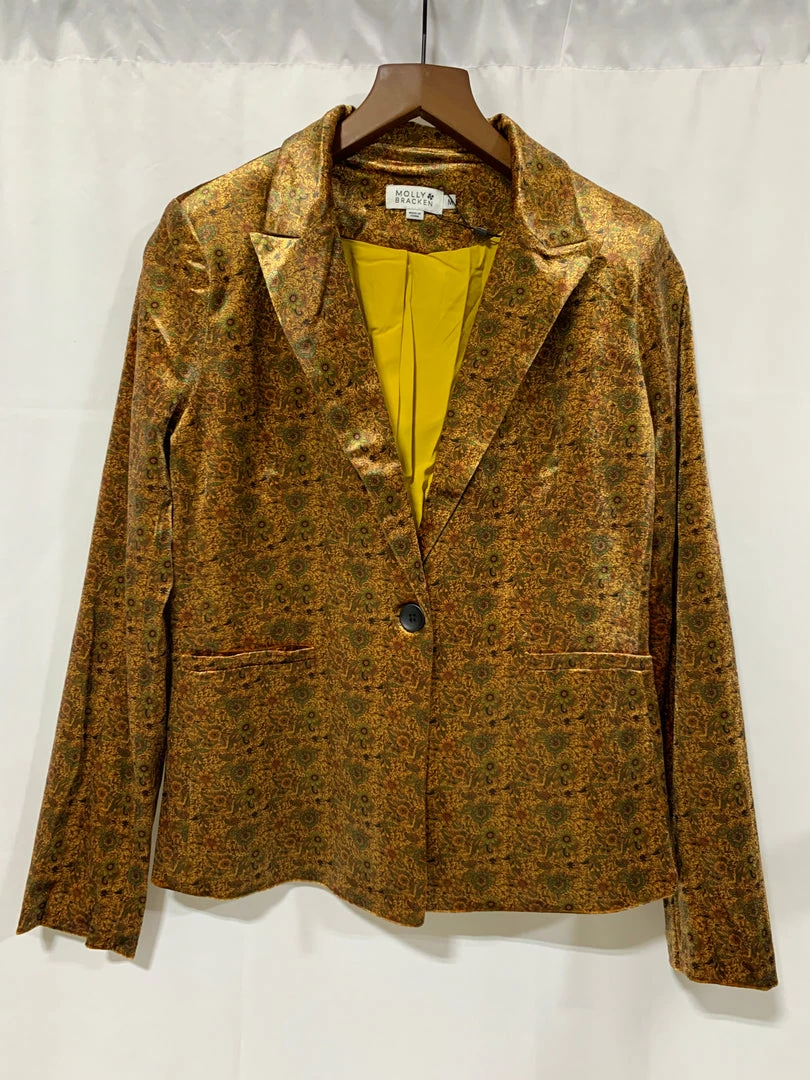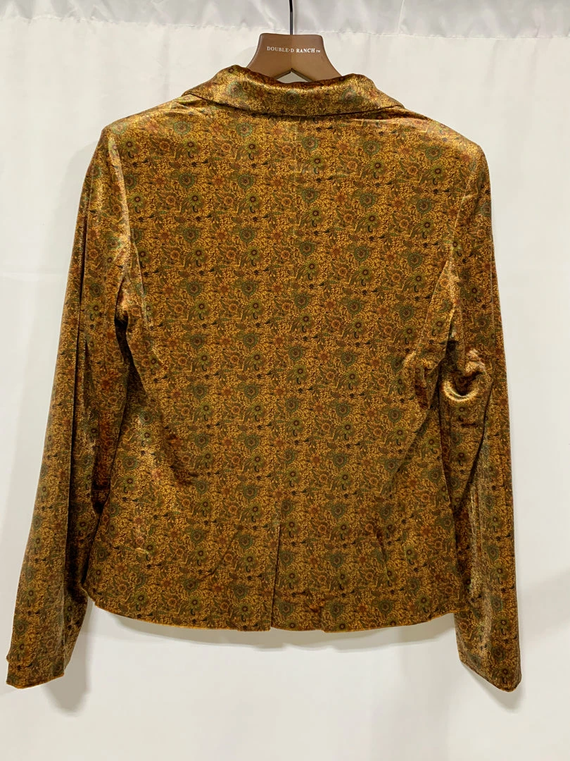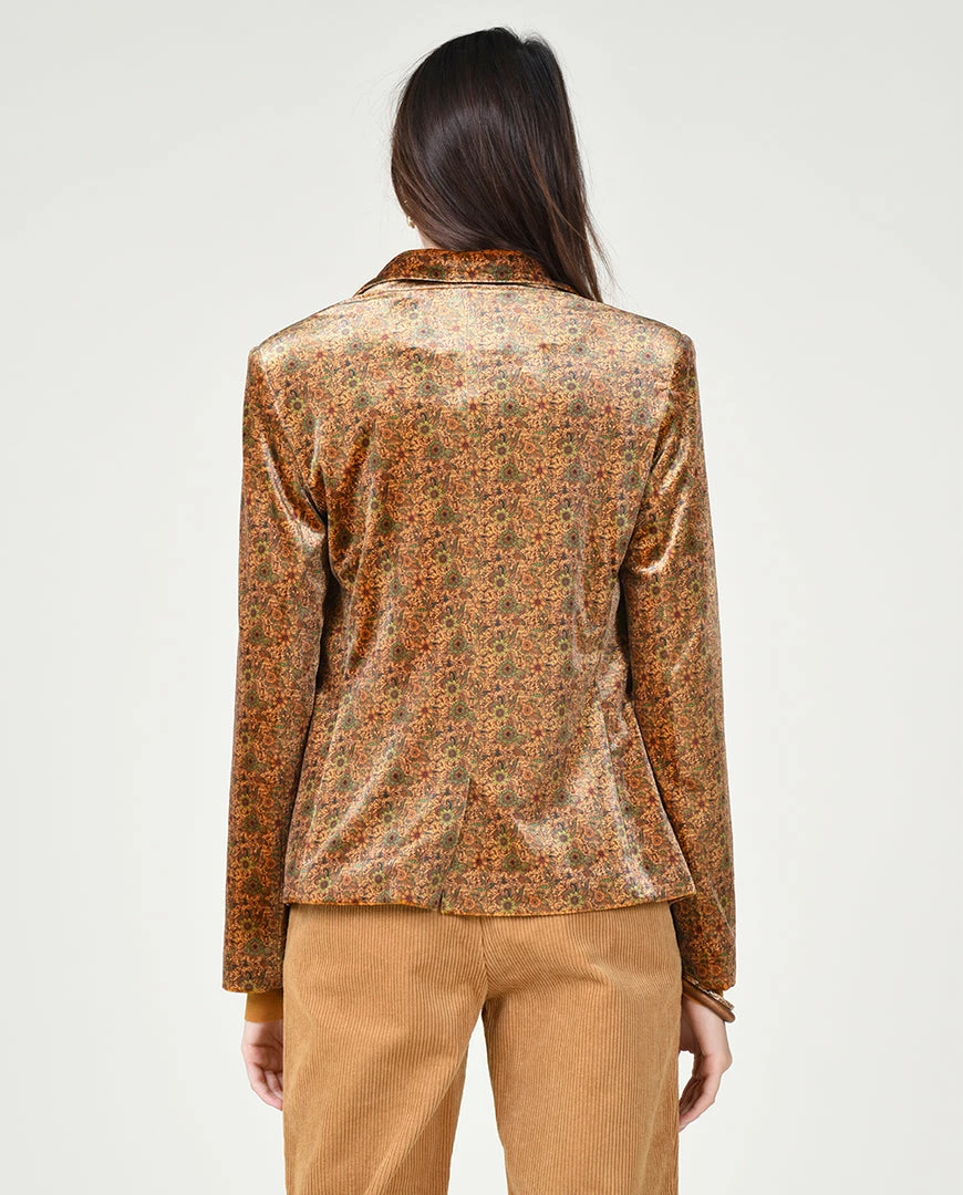 Blast into the retro scene wearing this super classy velvet blazer! featuring a gorgeous gold and avocado floral pattern, you will find yourself the hit of the party!