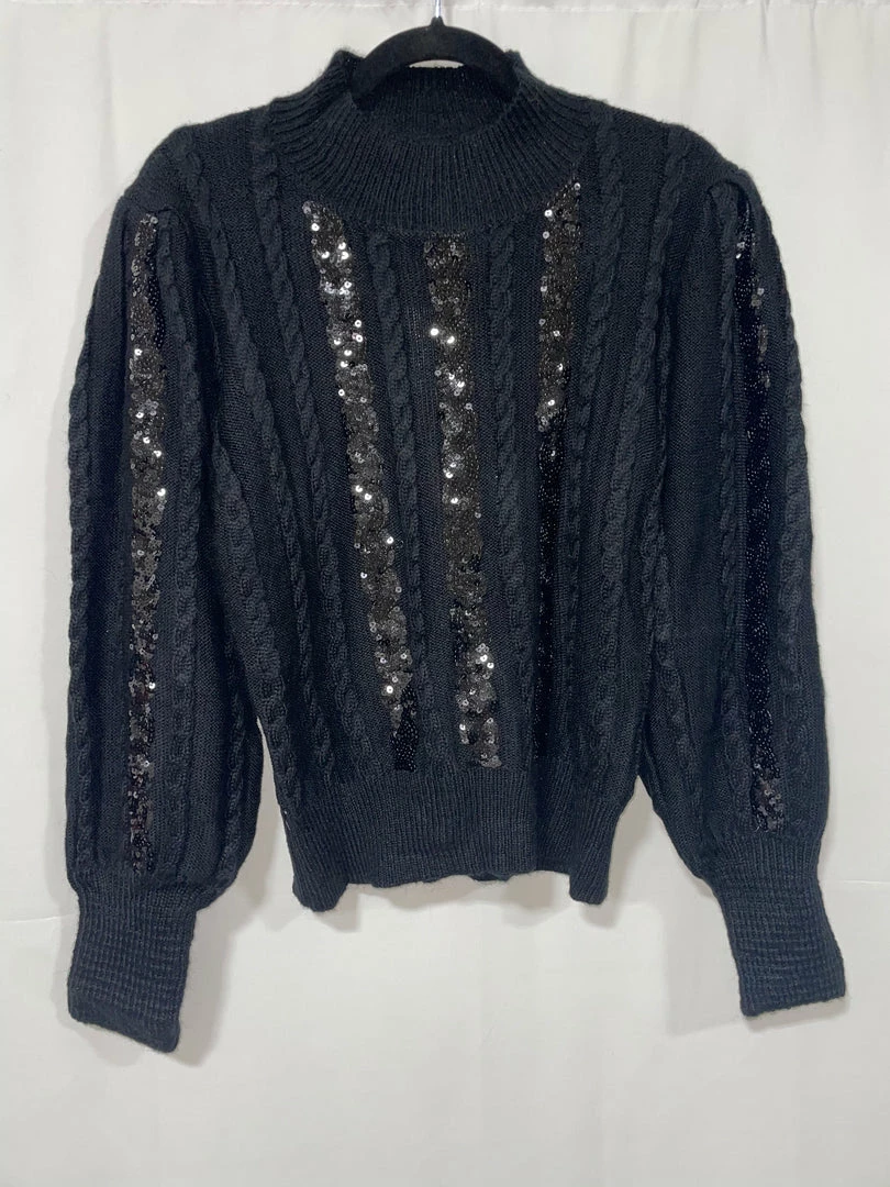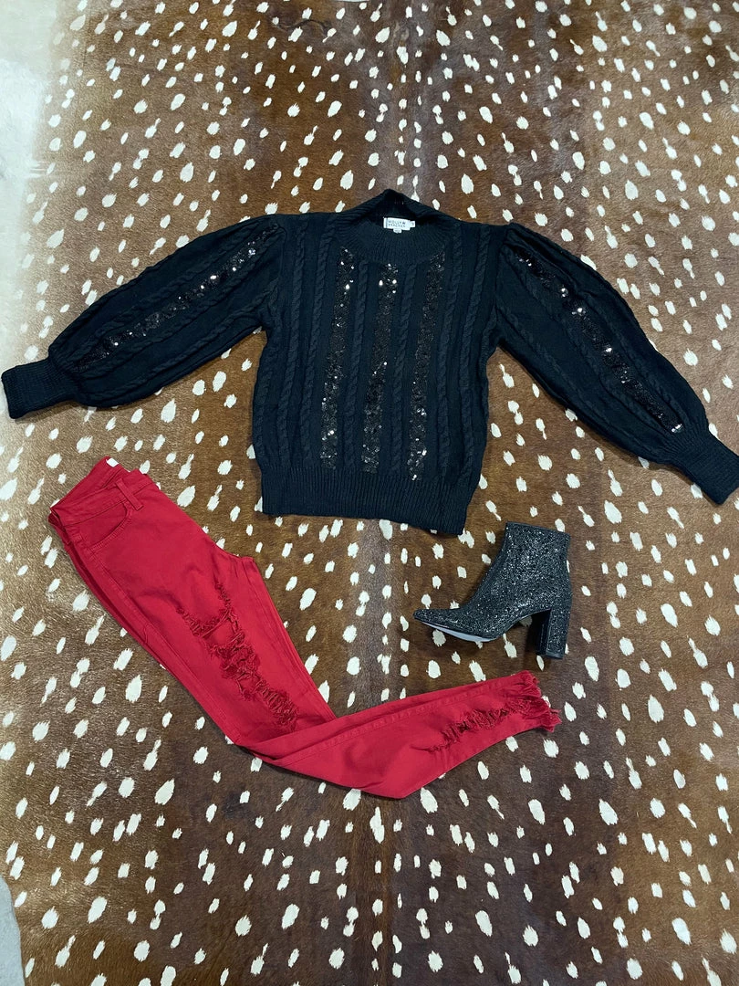 Twinkle here, twinkle there, twinkle EVERYWHERE! This sweater gives just a bit of sparkle with its black sequins and puffy sleeves. Let me tell you, we are here for it! This sweater is perfect for every holiday party, pictures, night on the town or even just a casual day where you want to spice things up.