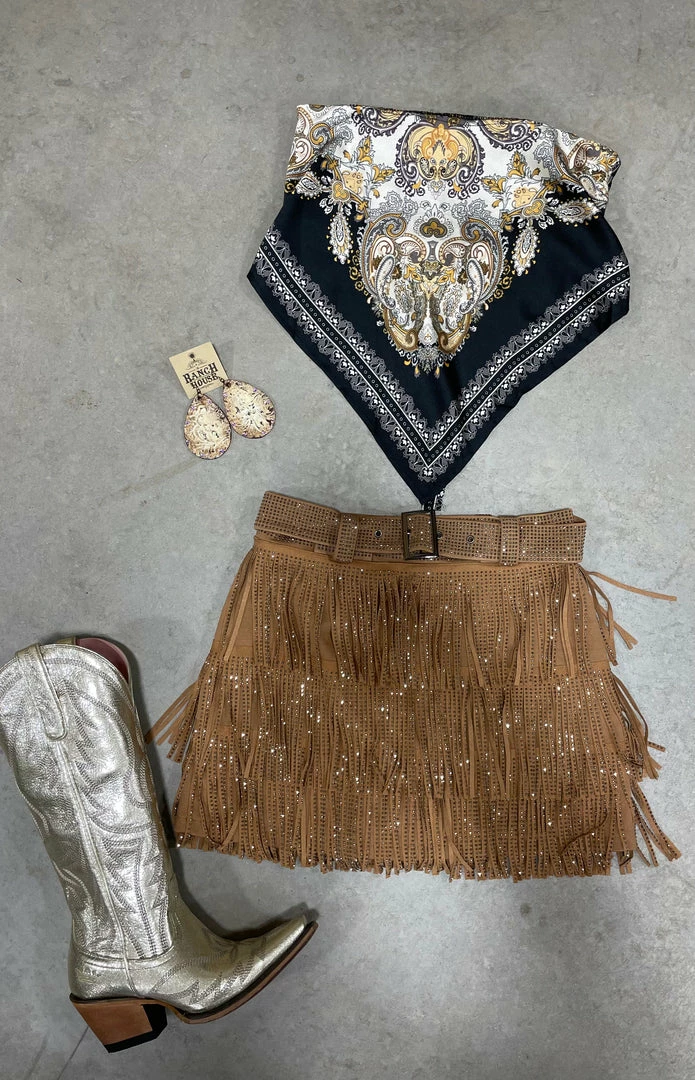 These shorts are a for sure SHOW STOPPER! Stretchy nylon shorts with a FANTASTIC rhinestone flowing fringe overlay.