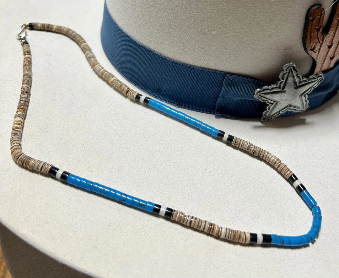 Turquoise and tan necklace with fun black accents. Perfect for your day out with the girls or a night out on the town. Great for layering!