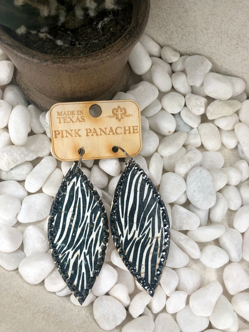 The Ranch House Accessories Zebra Leaf Earrings With Rhinestones