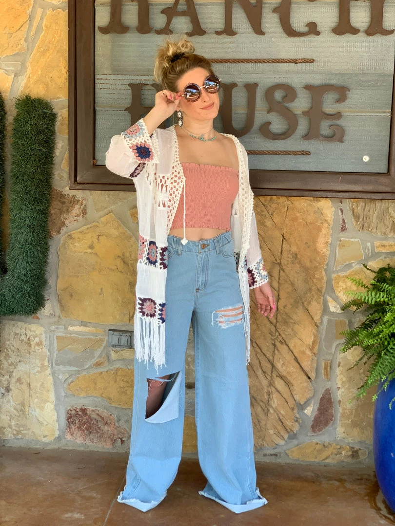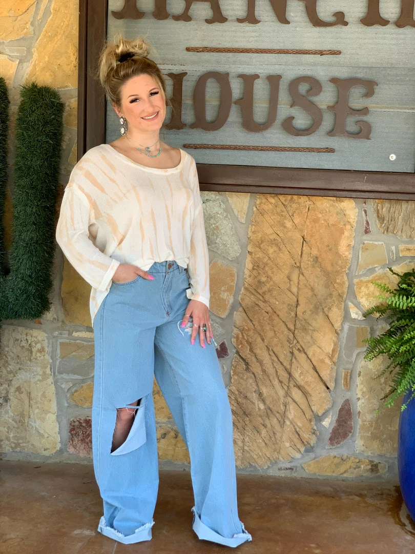 Welcome back to 1999! These jeans are a blast from the past. They feature a super wide leg with heavy distressing and are every hippie’s dream!