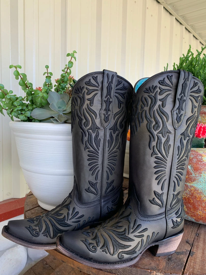 Our new Mystic Falls Boots by Corral are your perfect every day boot. They could just as easily be dressed up as they could be dressed down. They feature a vintage wash black with a black embroidery design.