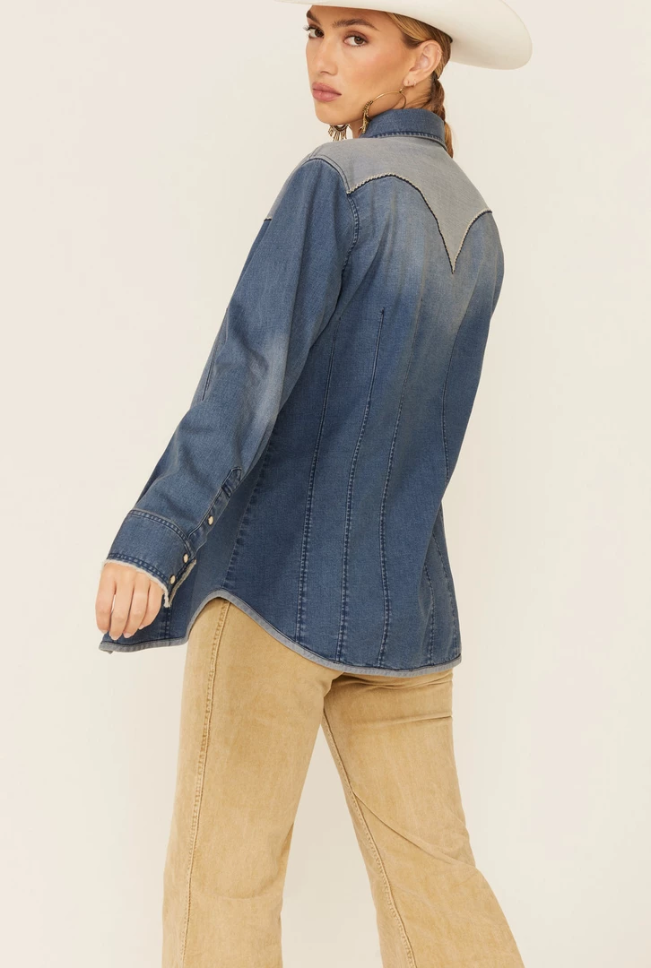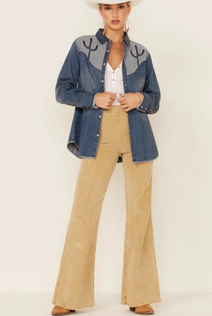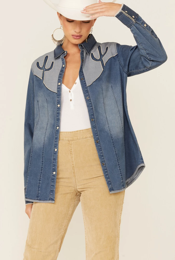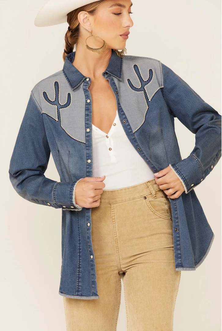 TASHA POLIZZI WOMEN’S FLARA INDIGO CACTUS LONG SLEEVE SHIRT