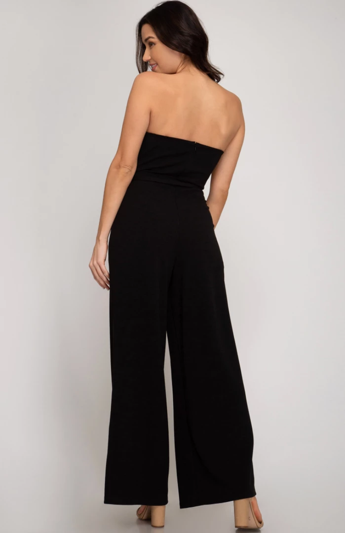 Whether you are looking for an outfit for a wedding, date night with your man, or a girls night out, we have you covered! Our Don’t Jump-Suit To Conclusions is strapless with a zipper up the back. It features a small v-neck front with a tie belt around the waist. This jumpsuit is so elegant, yet super stretchy, leaving you comfortable all night!