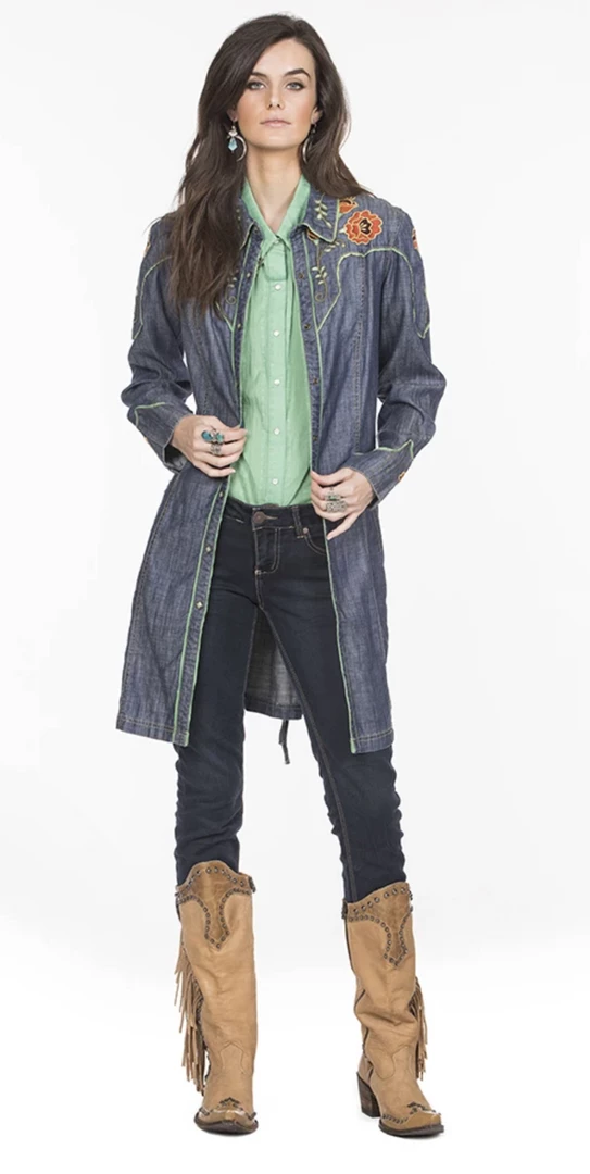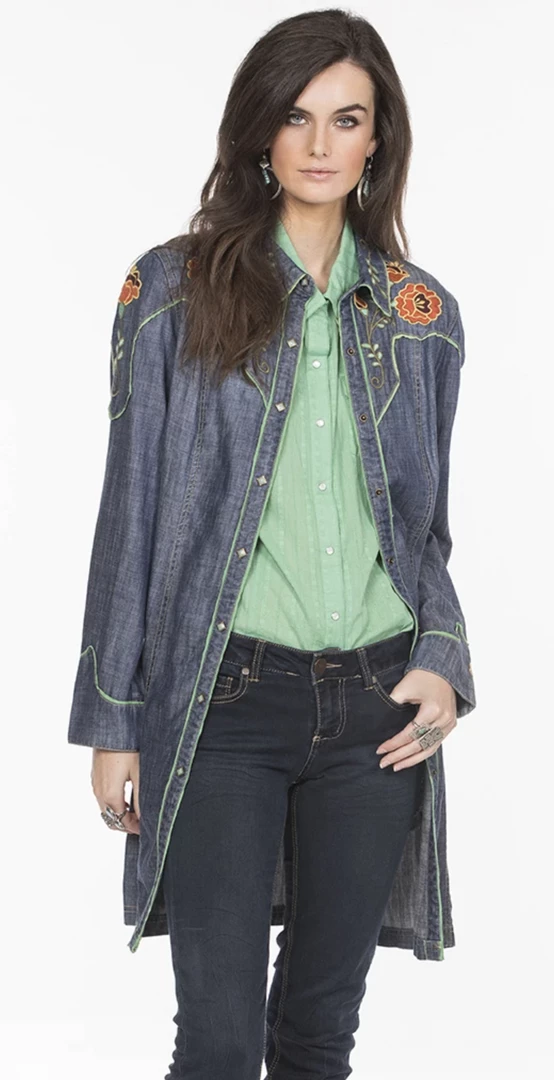 Double D Ranchwear Everybody’s Talkin’ Jacket. Featuring denim with flower embroidery and finished with a snap front closure.