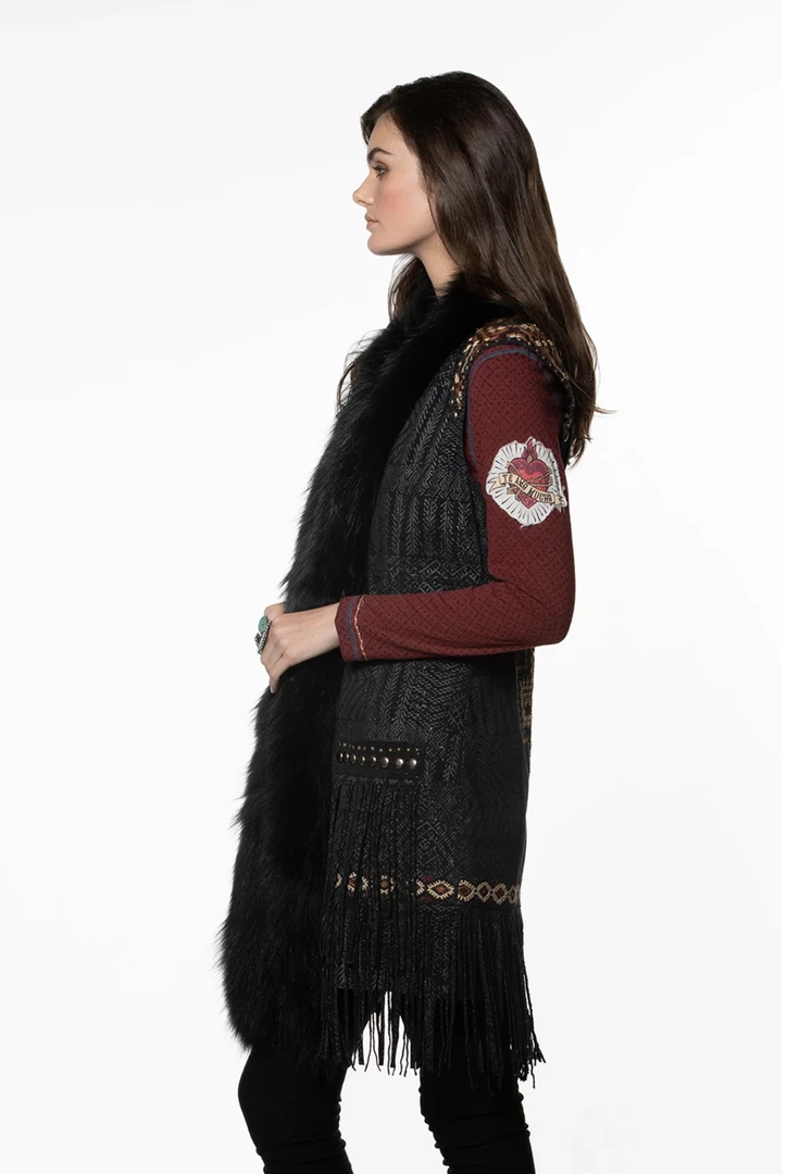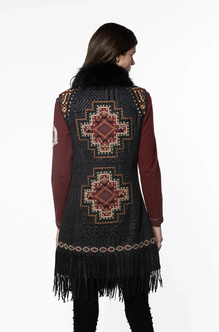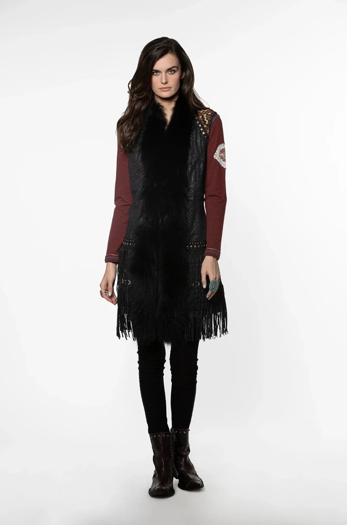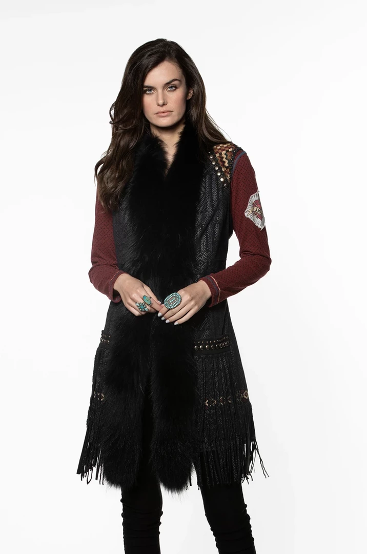 Hand-stitched embroidery, full-length fur trimming, multi-layered fringe – what’s not to love?! Plus, it’s a vest, so you can wear it even if you live somewhere the temperatures refuse to drop! We dare you to wear it with anything, but we love it over the basics!
