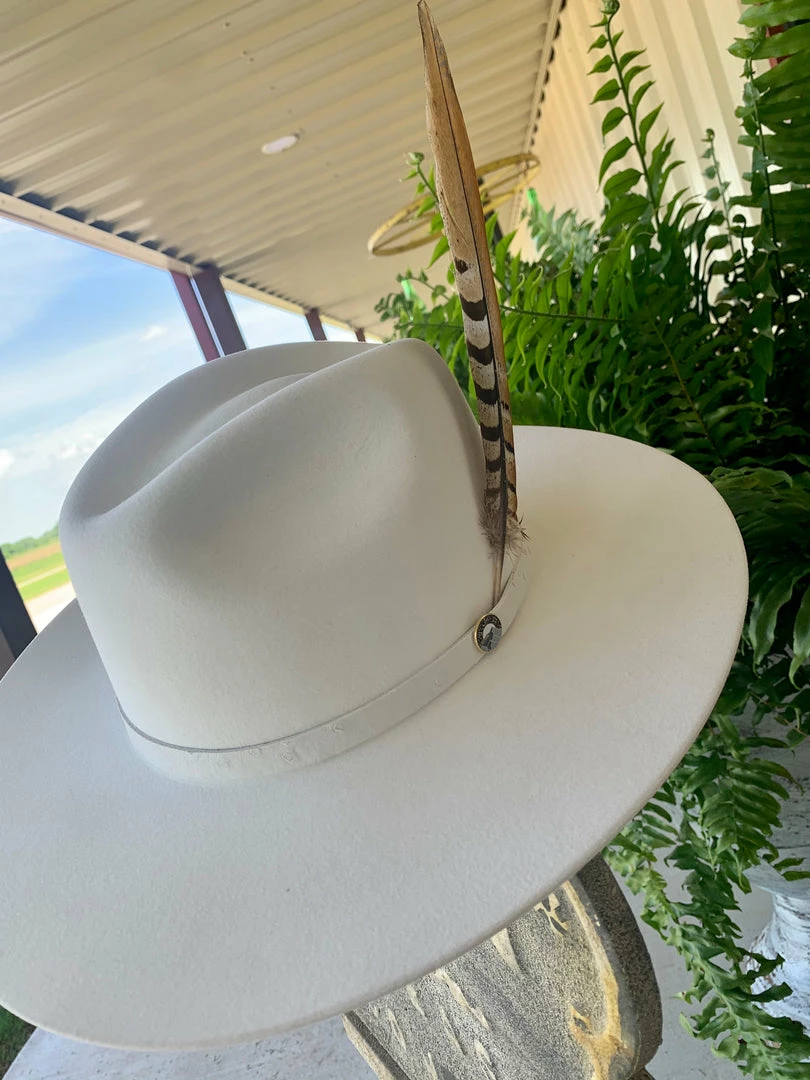 Stetson has done it again with this beauty! The Stetson Luna Hat is all over white felt with a white ostrich band.