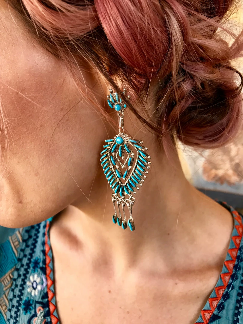The Ranch House Jewelry Zuni Turquoise Chandelier Earrings
