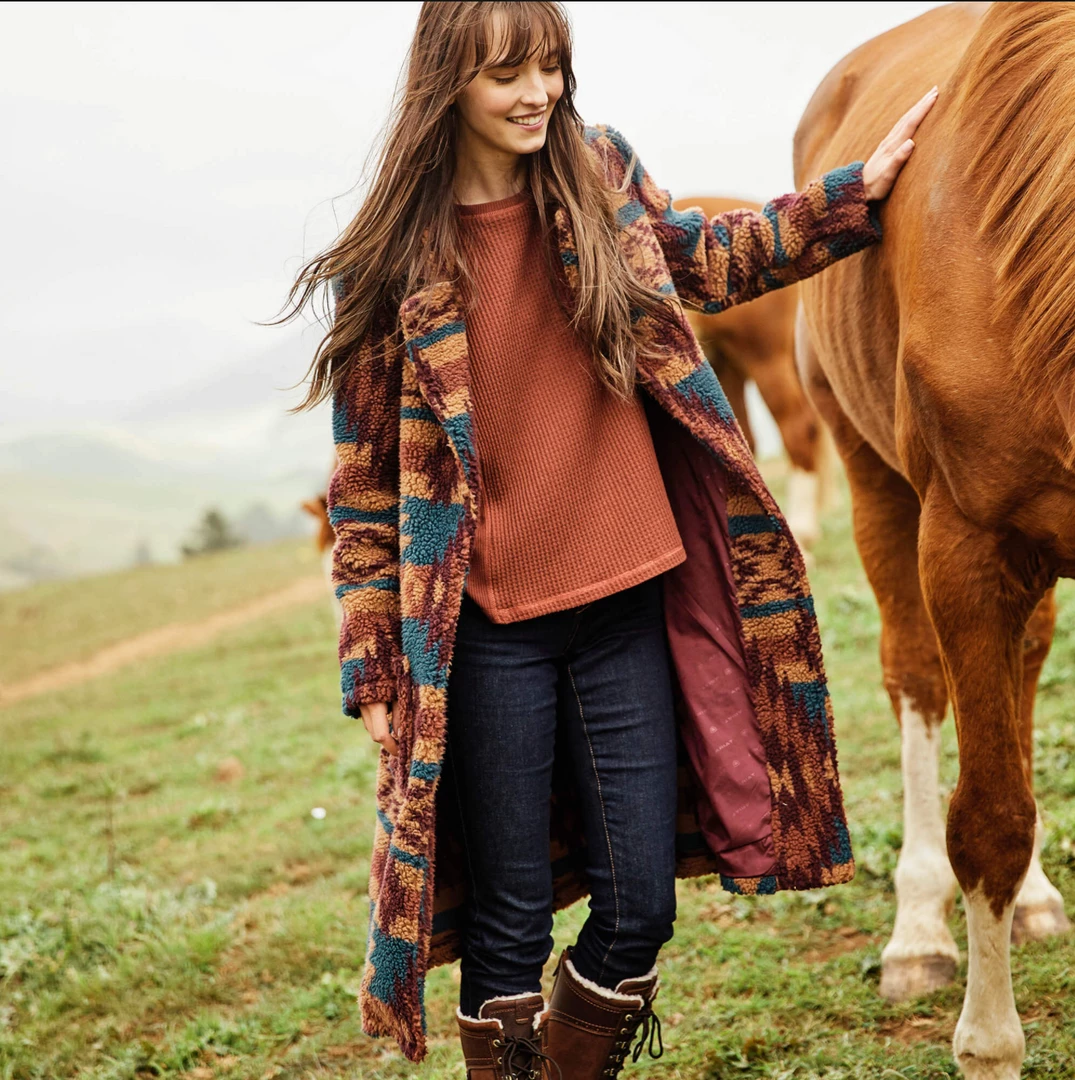 - Jacquard Sherpa long duster length coat