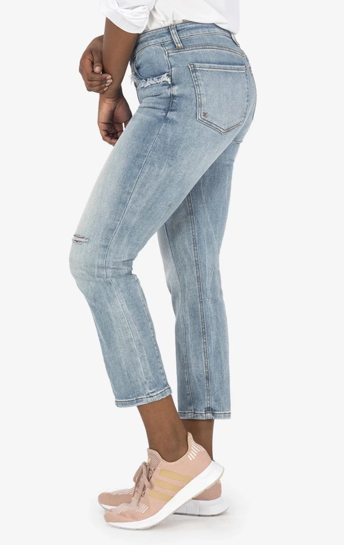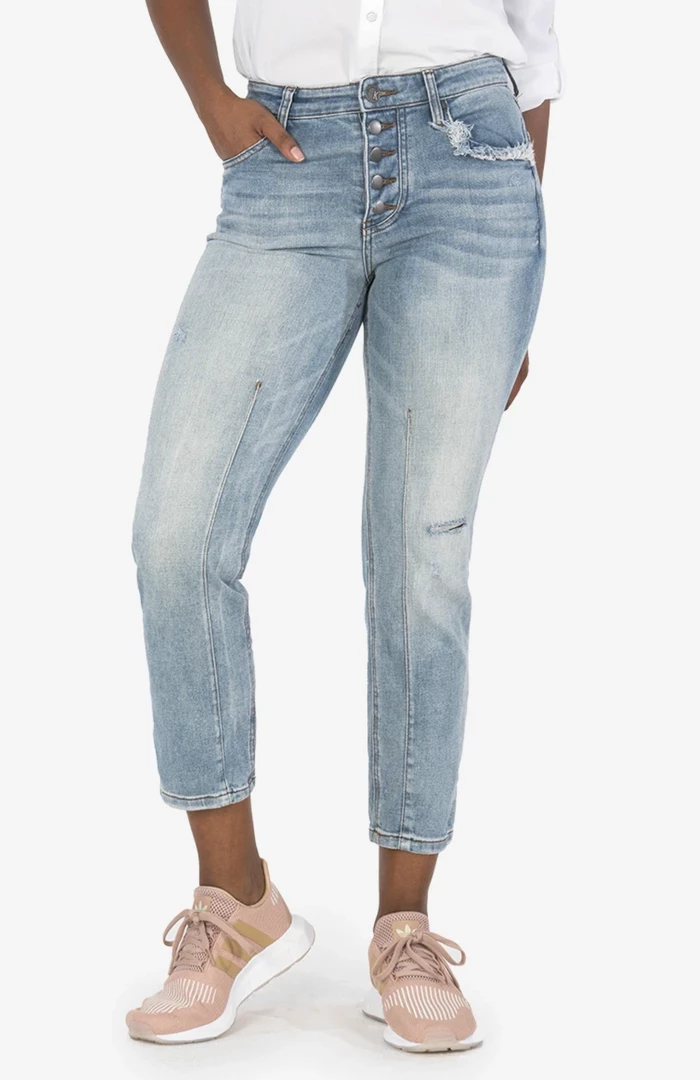 - A fresh take on your average straight leg that is right on trend. Our Reese straight leg jean is a closet essential. Designed in our cotton denim with a touch of spandex, the exposed button-fly and front seam adds a touch of detail.High Rise