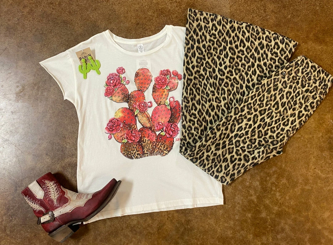 The Ranch House Leopard Rose Cactus T-Shirt Tops