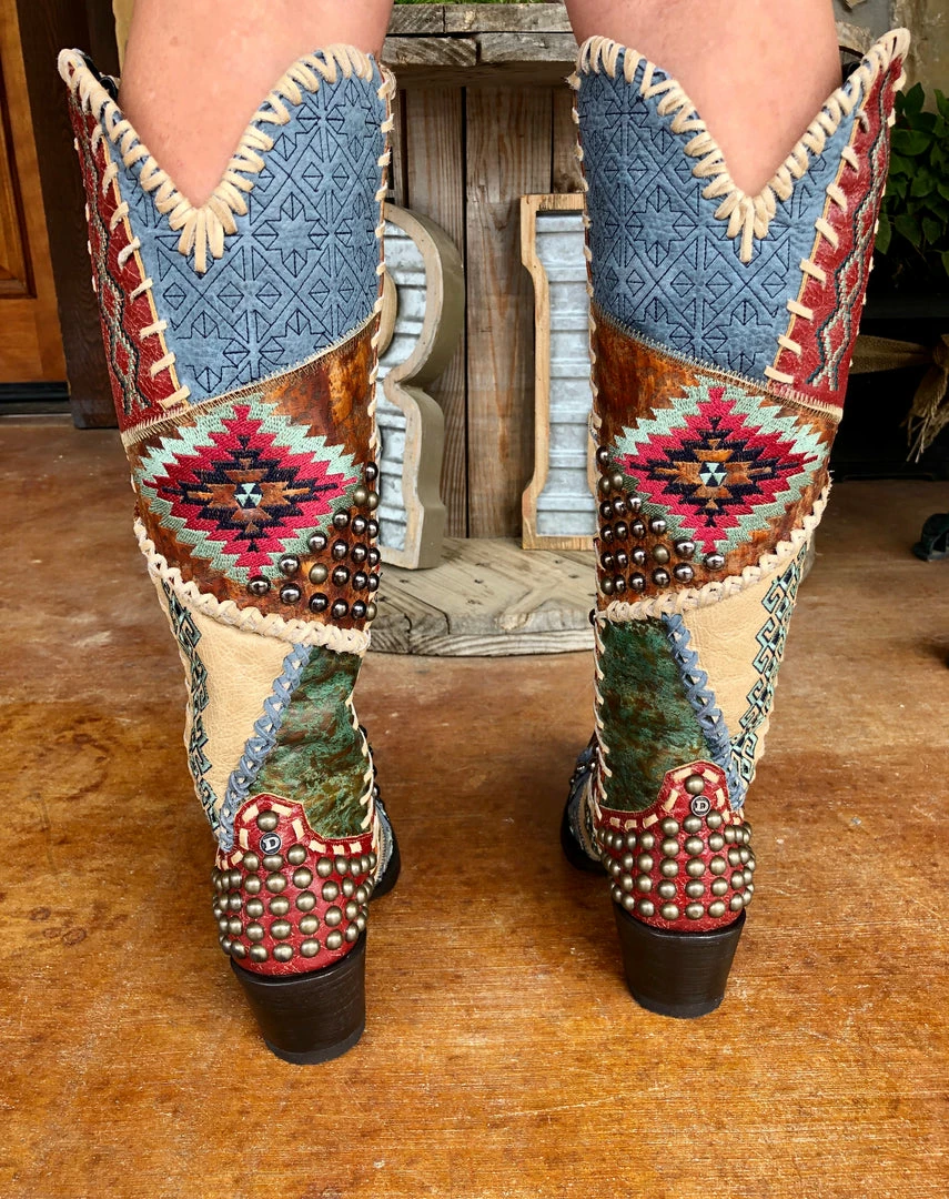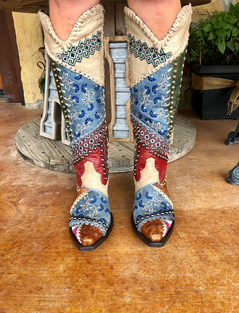 I have no words for this Amazing Boot!!! This patchwork beauty is accented with silver and gold brads with some whip stitching.