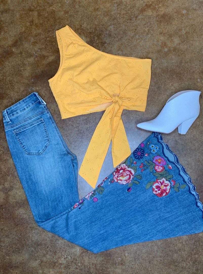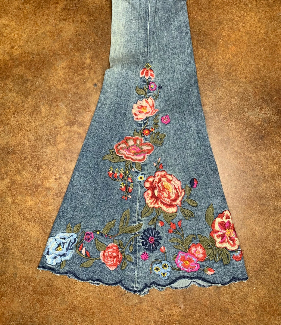 Our new “Once And Floral” bell bottoms are absolutely gorgeous. We are obsessing over the floral embroidery on the sides of the flares. They are true to size with amazing stretch.