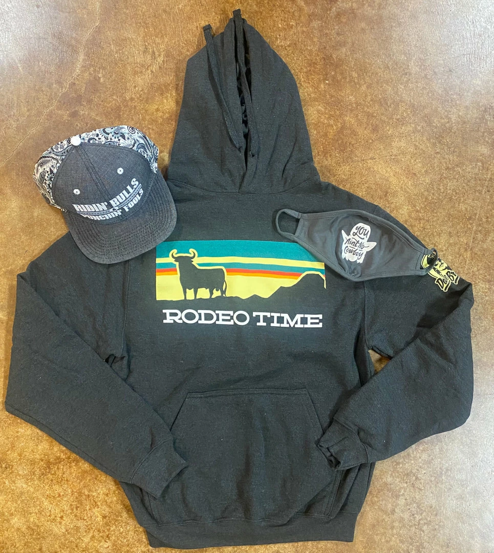 Heather gray “Rodeo Time” hoodie by Dale Brisby