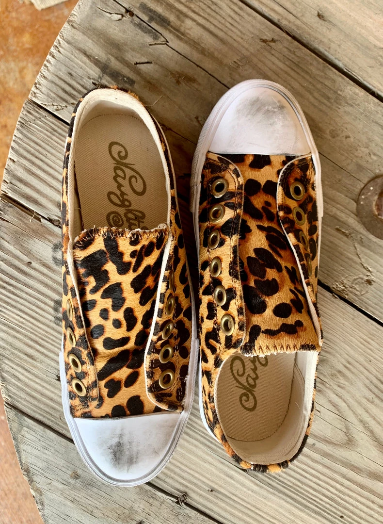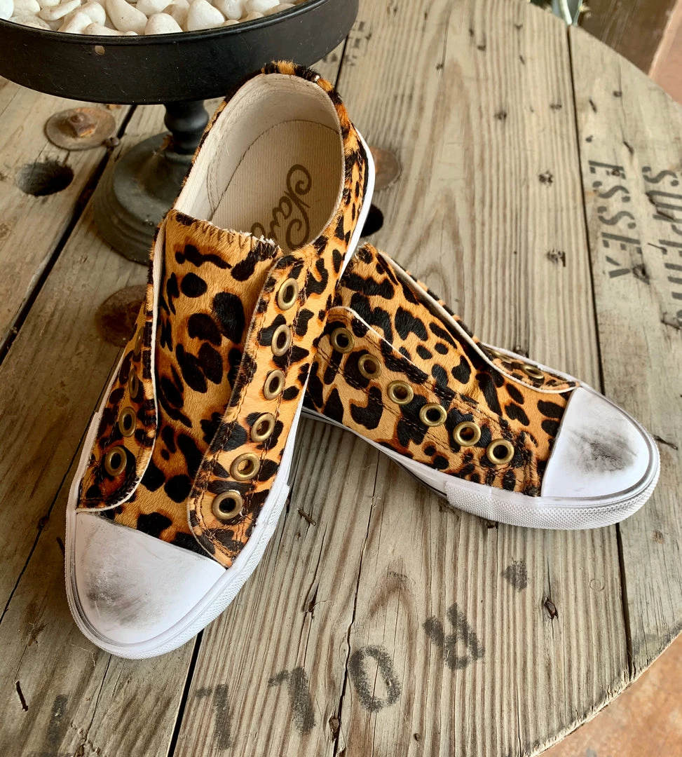 The Running Wild Sneakers are perfect for any day and any season! They are leopard faux hair with distressing on the toe.