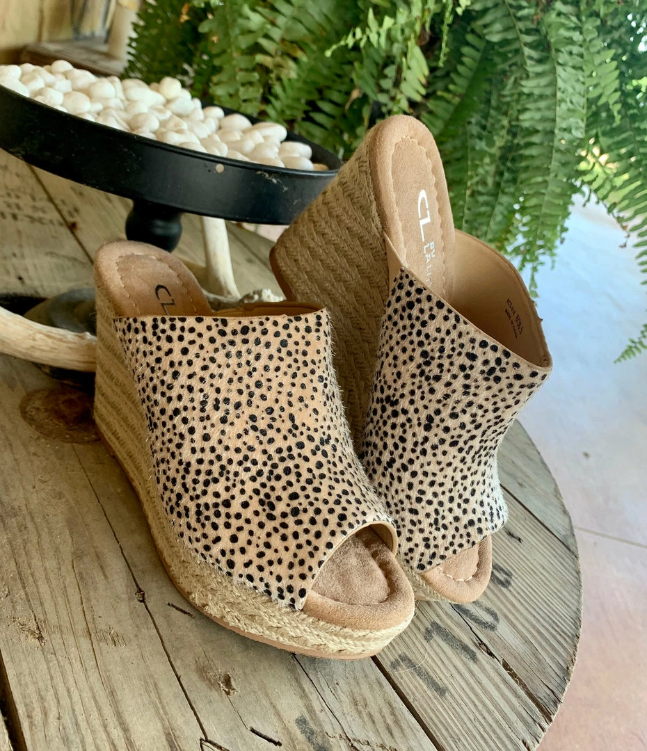 The Billions Faux Cheetah Wedge are calling your name this season! They feature a slip on style, trendy cheetah print, and a wedge heel. Pair these with some skinny jeans for an elevated look!