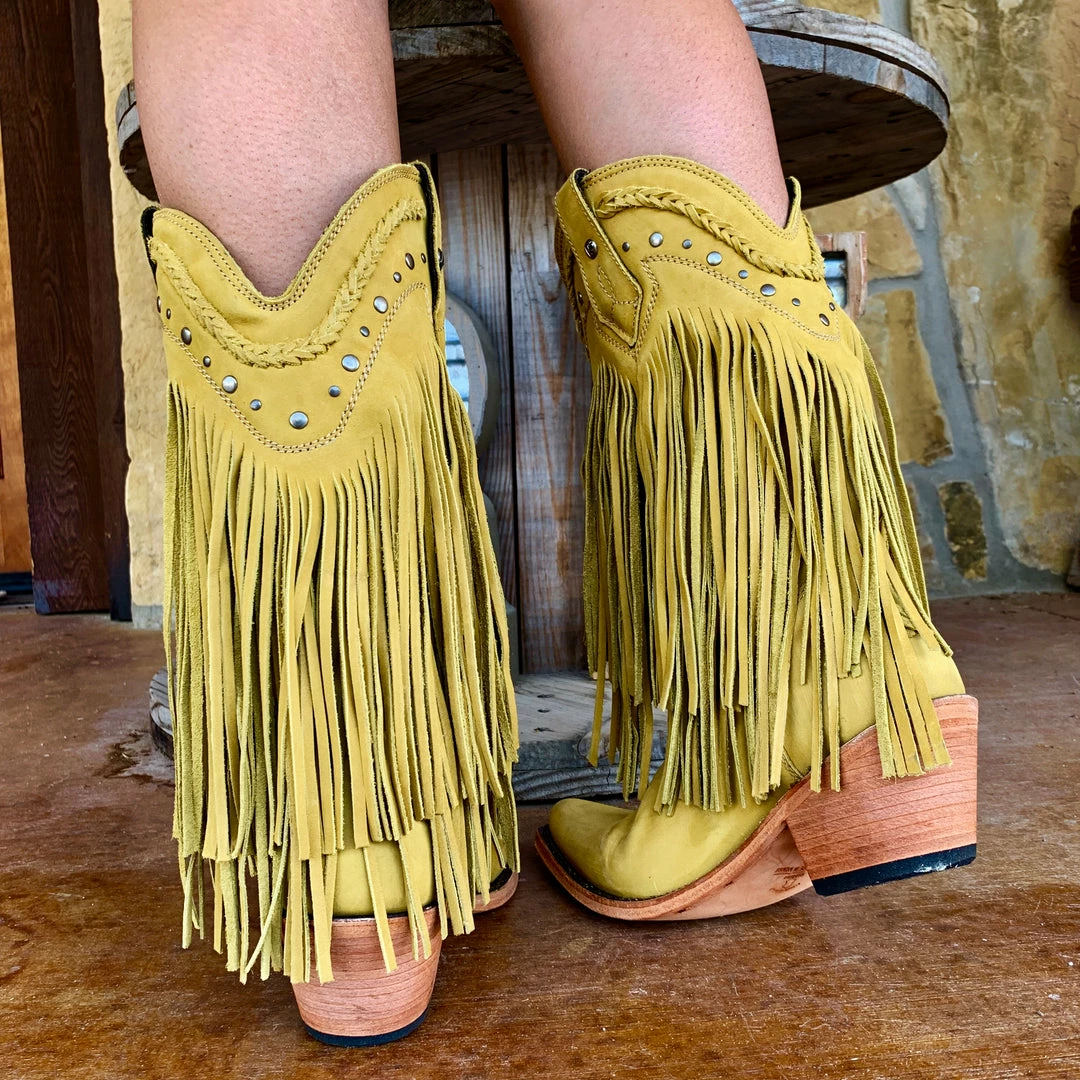 The perfect mustard color and the perfect amount of fringe. Butter soft leather.