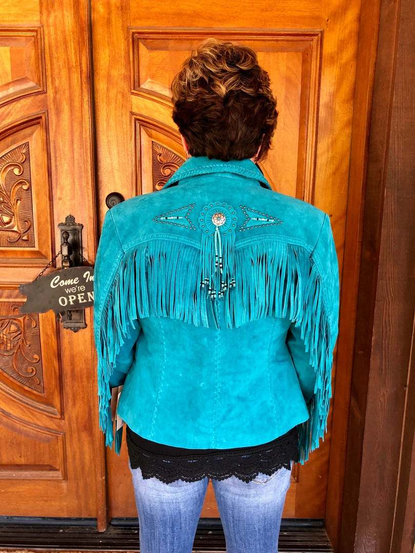 Beading, concho’s, fringe, silver brads and oh so much turquoise.