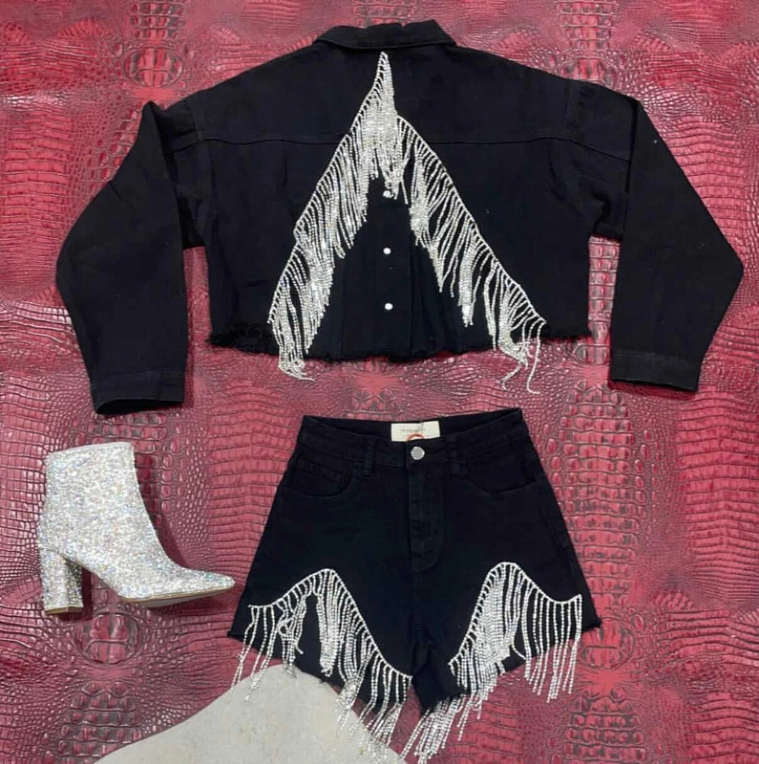 Get ready for all the compliments and attention! You’ll have everyone jealous with these eye catching jacket (that has a matching shorts, Shimmy & Shake Shorts)!