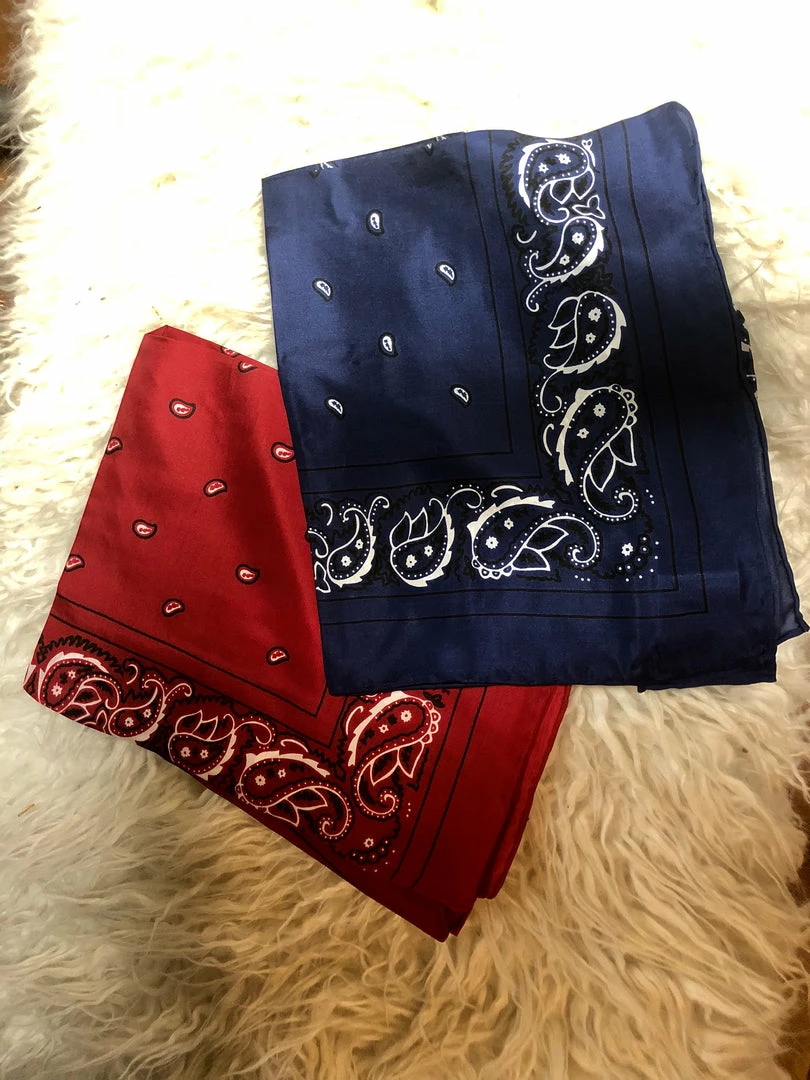 These 100% silk wild rags come in red and navy and have a bandana pattern. It is the perfect addition to your wild rag collection! It’s perfect for all weather and seasons and adds just the right amount of color or sass to any look you choose!