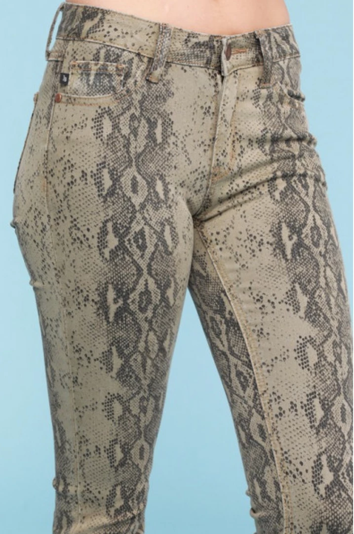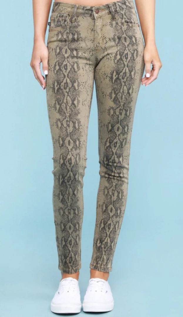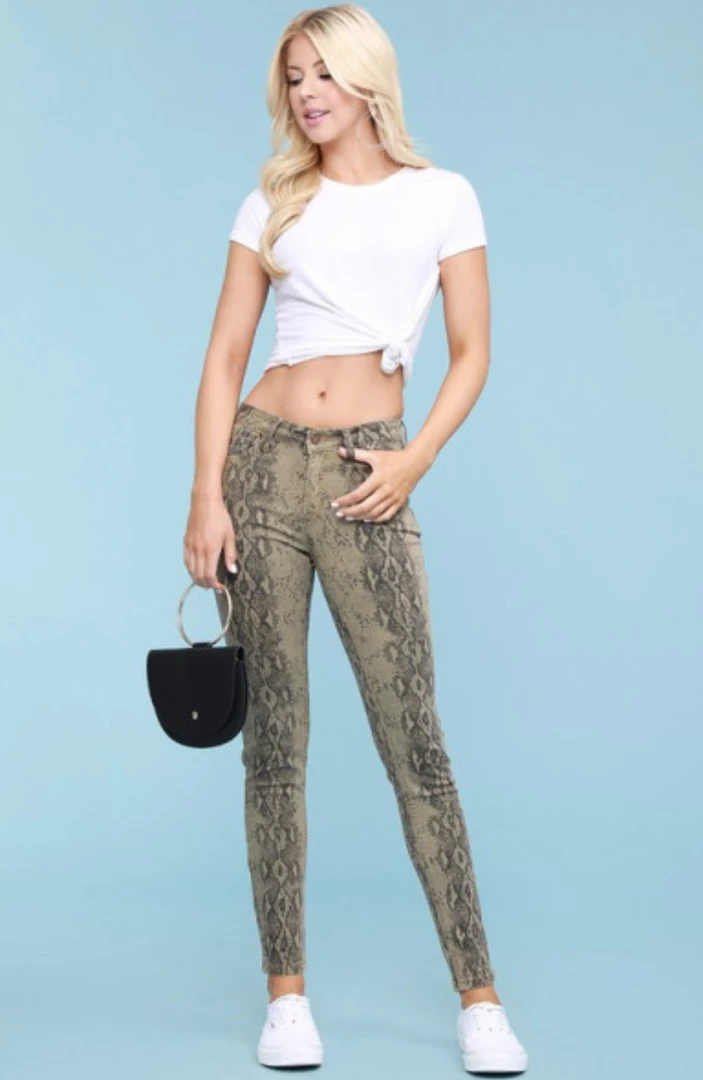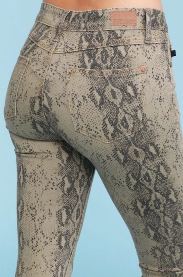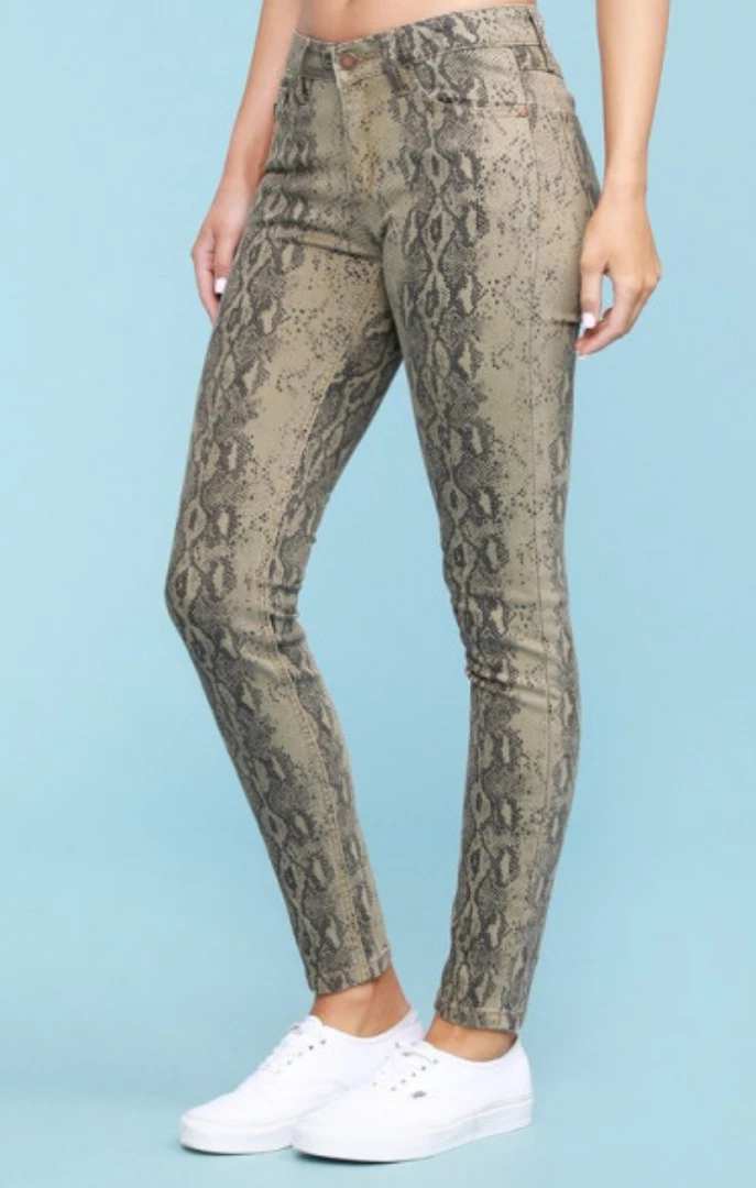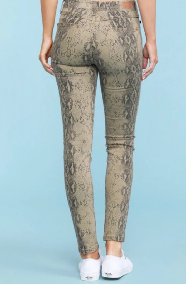 These taupe python skinnies are perfect! They feature a high waist with working belt loops and pockets! These are available in sizes 0-24W!!