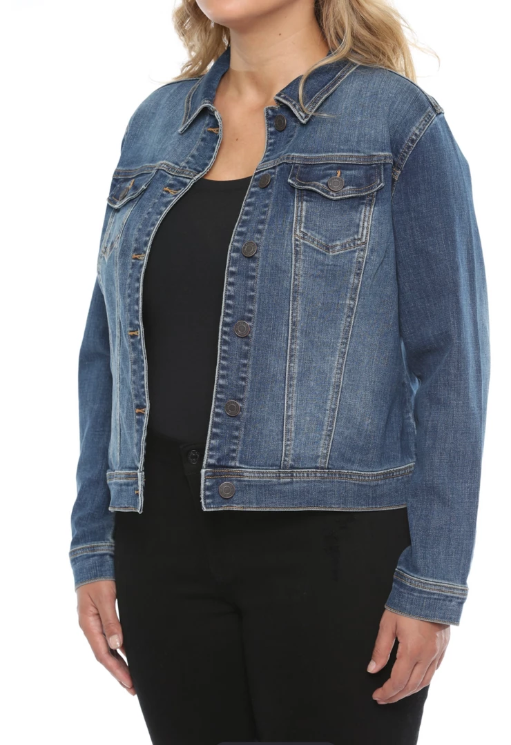 Take me back to the 80’s! Denim jackets are back in style. The dark denim jacket features two chest pockets, a collar, and buttons. Dress it up or down with sneakers or your favorite red pumps!