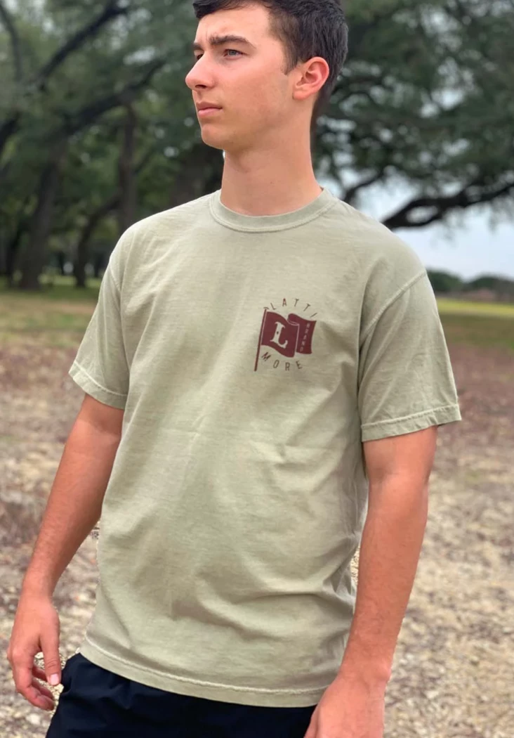 One of our new shirts with our newest mens line. Stay The Course Tee is on a light green khaki shirt.