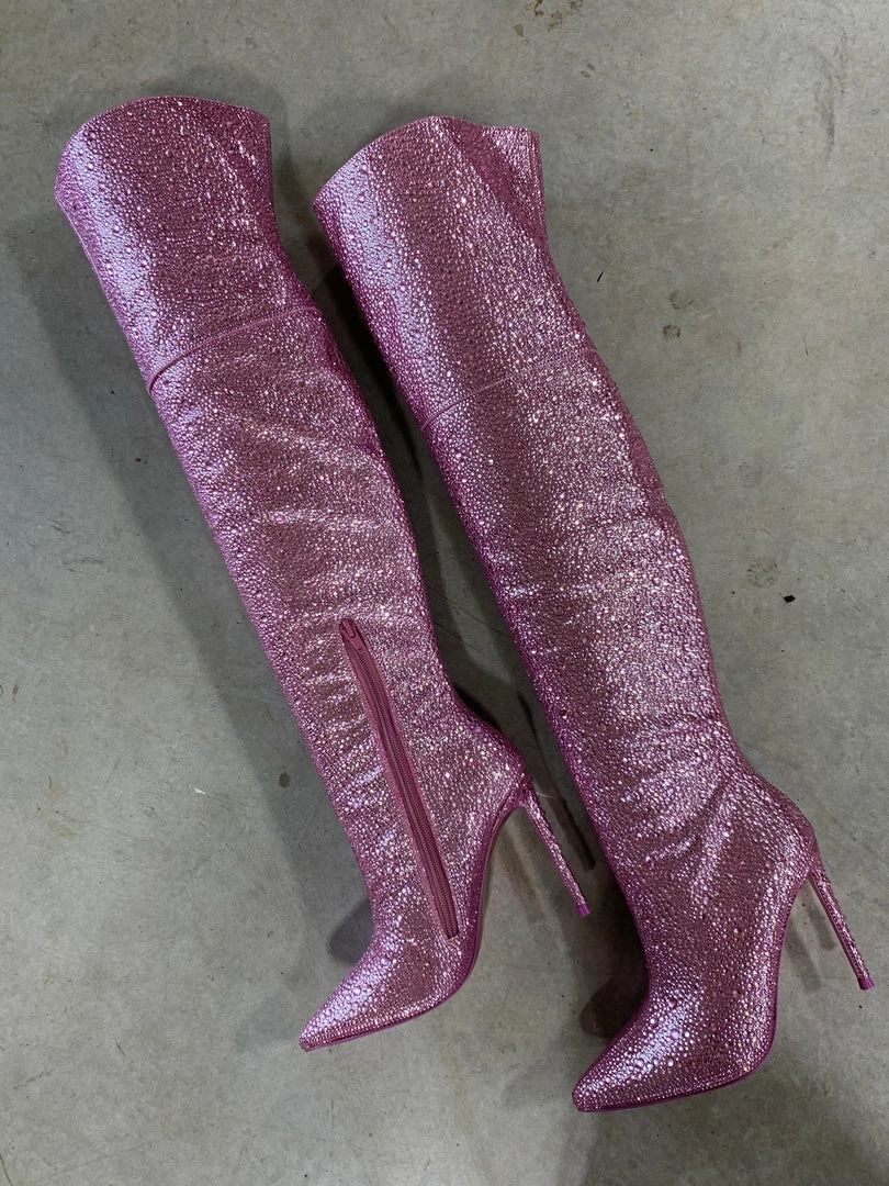 The next time you want to sparkle—day or night—you can count on VIVIANNE. These striking thigh-highs are designed with a sleek pointed-toe and towering stiletto heel.