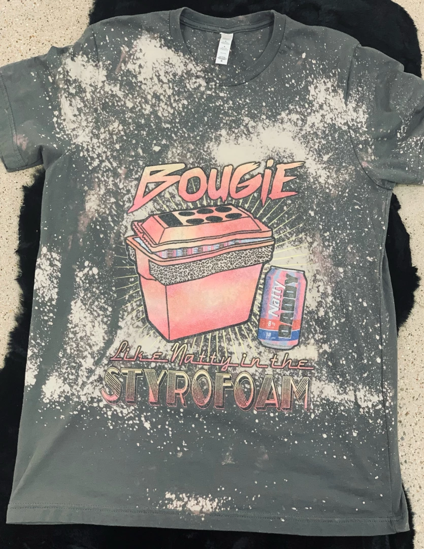 Shown on an Asphalt Bleached Bella Unisex Jersey Tee.