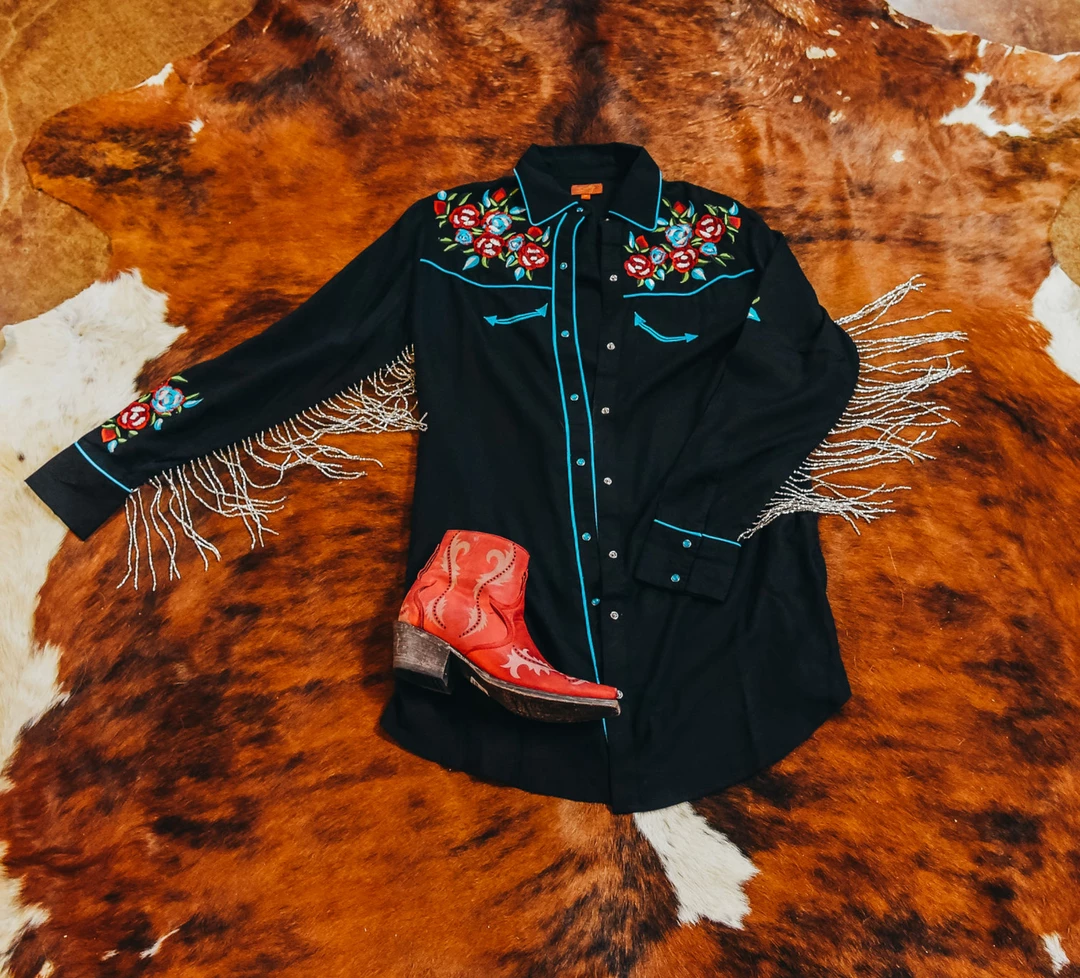 This gorgeous piece is just amazing. You could wear it with a pair of leggings, jeans, or a dress underneath. It has pockets! The beaded fringe is the absolute prettiest accessory we have ever seen on a top. There’s beautiful embroidery on the front, sleeves, and back too. The beads are iridescent and they sparkle and shine like nothing we’ve ever seen. The pictures do not do it justice. It is just a stunning piece. Made for the person who knows they deserve to look like a million bucks.