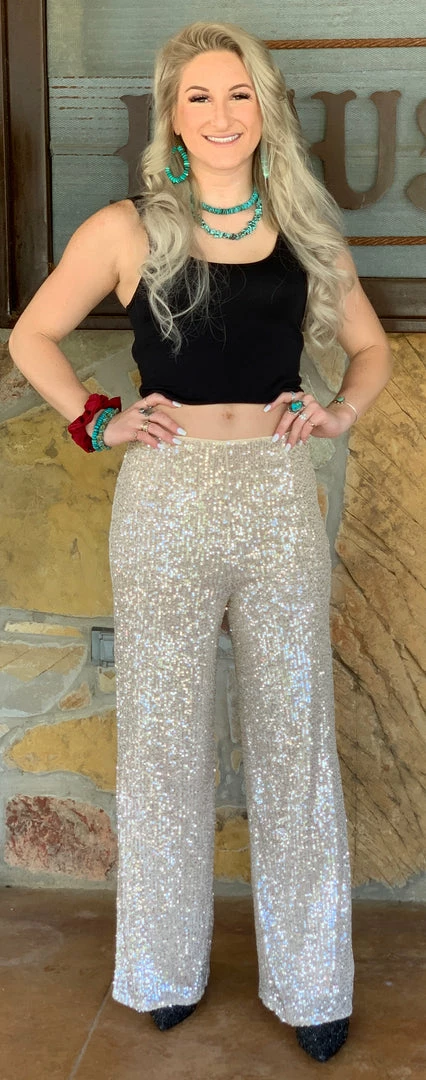 Get ready to turn some heads with these show stoppers! They are covered in sequins on the outside, but lined on the inside for your comfort.