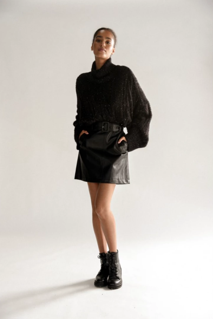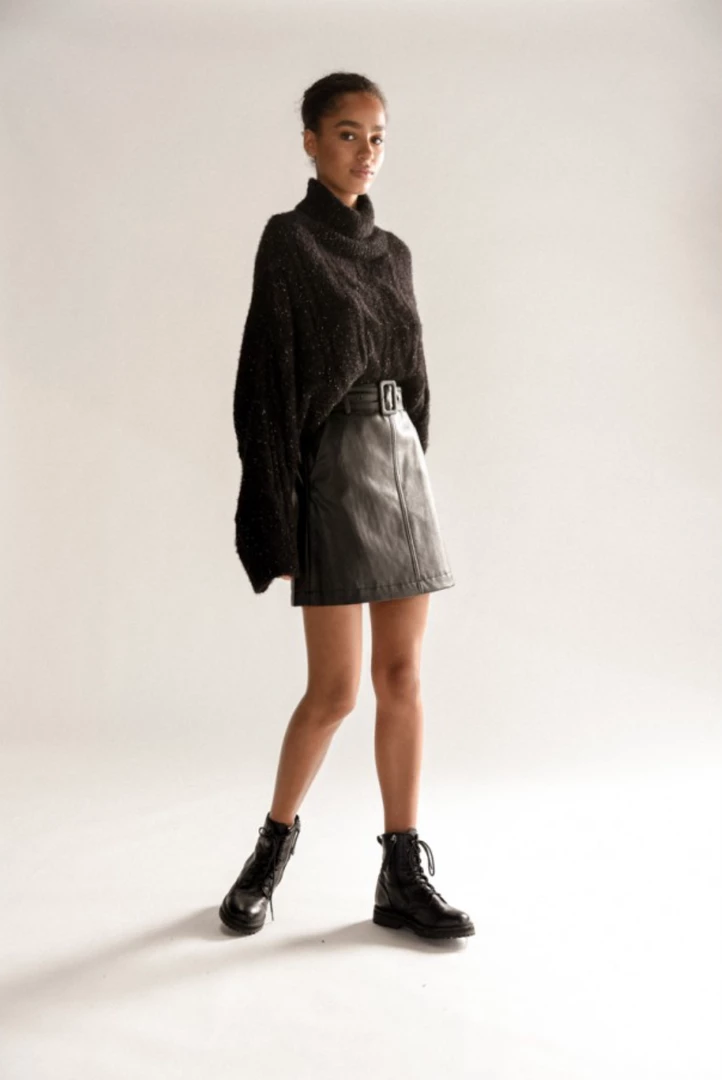 This sweater is perfect for the colder months. The wide sleeves are stylish, and the turtleneck is cozy.