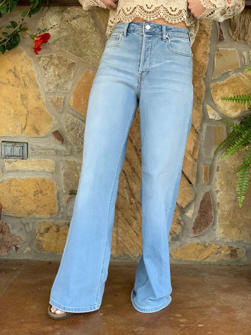 You’ll fall in love with this pair! Relaxed fit, wide pant legs finished the look. Designed with substantial stretch to keep you comfortable all day, the pair is crafted with belt loops and a button fly closure.