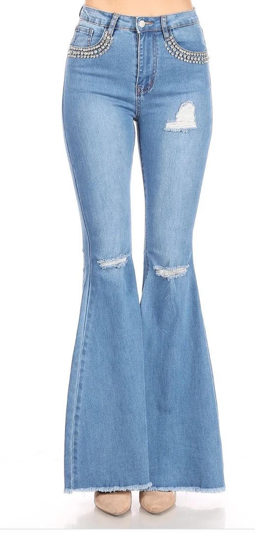 Our Bling It On Bells are the perfect bottoms for any occasion! They feature a flare bottom, light distressing, and some bling around the front pockets. They have working belt loops and pockets, and have great stretch for your comfort!