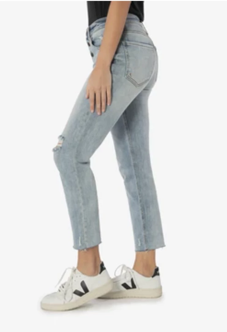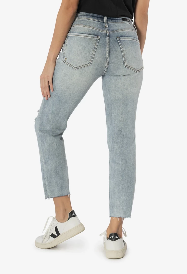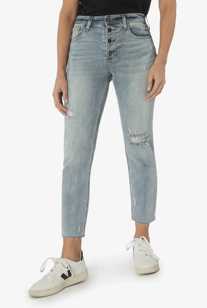 - On-trend and easy to wear, this pair of “mom” jeans are a closet essential. Cut from our cotton denim, deconstructed details add a lived-in vibe to this classic pair.