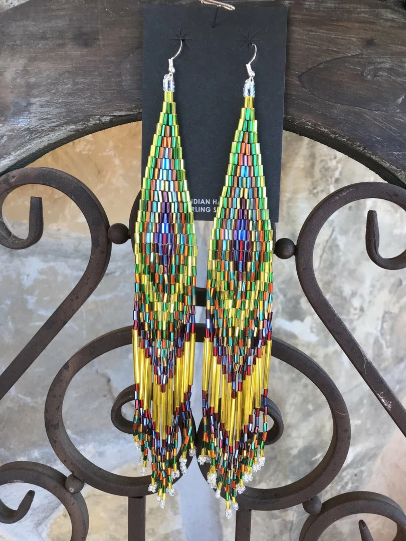 The Ranch House Yellow Feather Bead Earrings Jewelry